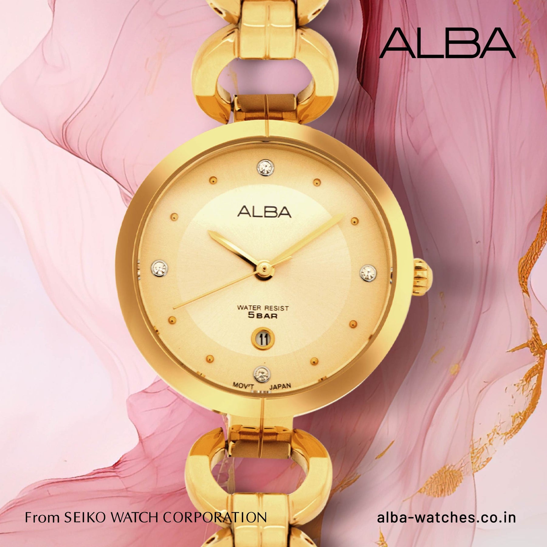 Unfortunately some people suffer from allergic reactions to certain materials used in the manufacture of watches, straps and bracelets. While all the products used in ALBA watches are of a high standard, we recommend that if an allergic reaction occurs you stop wearing the watch and consult a doctor. To reduce the risk of allergic reaction it may be helpful to regularly clean the case and bracelet of your watch and not to wear it too tight on the wrist.